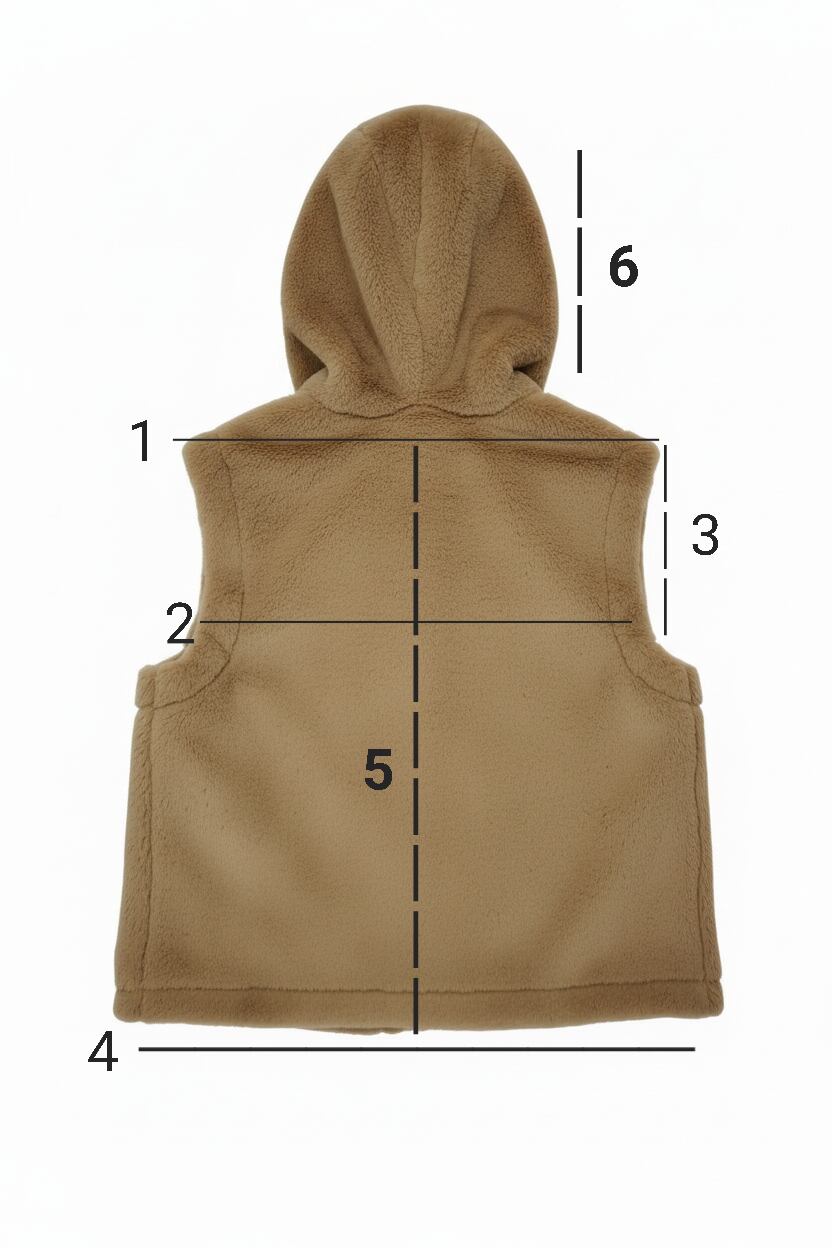 ①肩幅43 ② バスト40 ③アームホル20 ④裾幅49 ➄総丈50 ⑥フード丈30