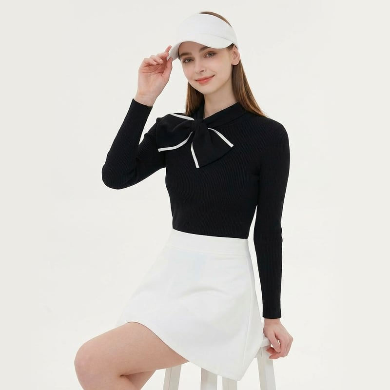 ・ネックラインをロマンティックなリボンディテールでフェミニンなムードを演出