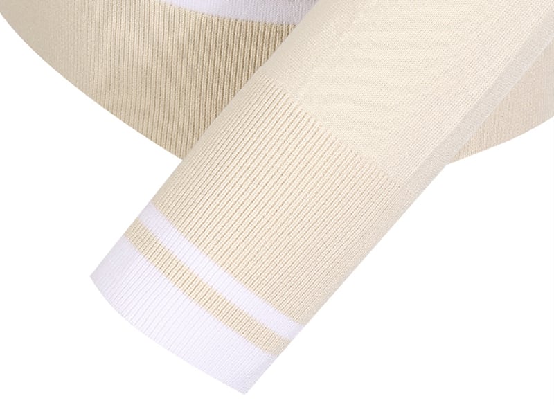 ・ストライプトリムディテール 袖口とヘムラインにホワイトのストライプトリムを施し、さりげないアクセントがスポーティーな印象