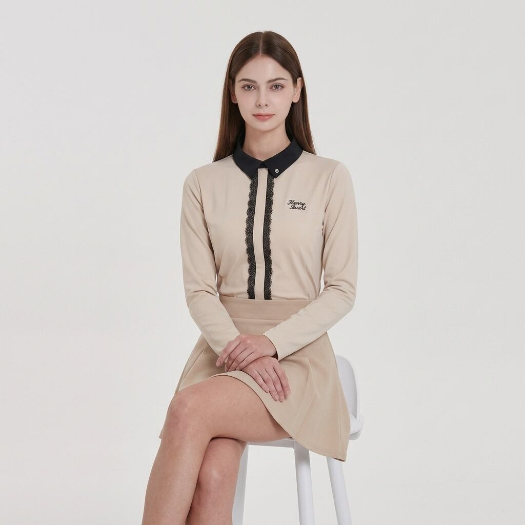 レースライン スリムトップ 長袖ポロシャツ MFT002