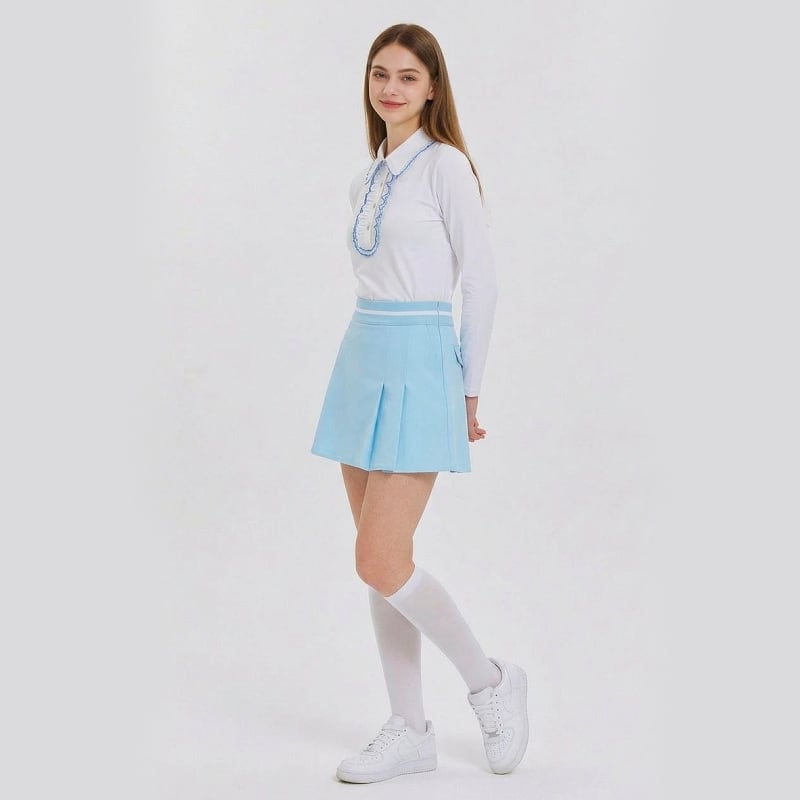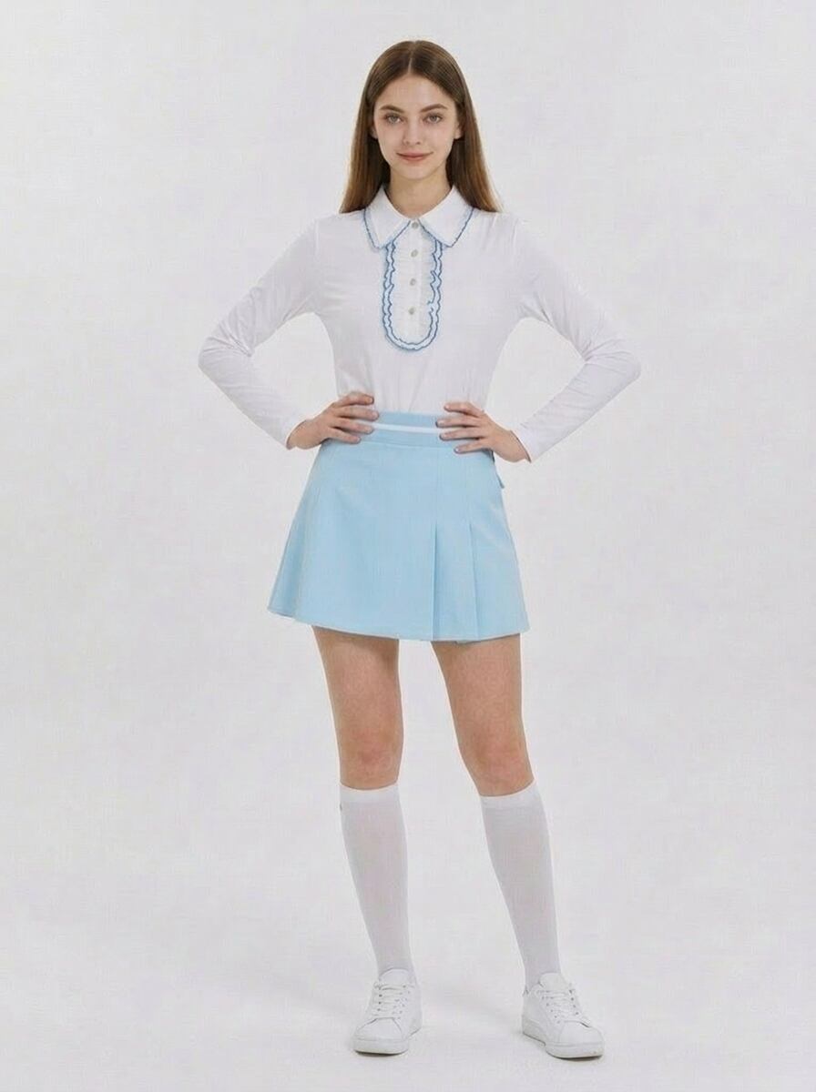 ・スカイブルー系のやさしいカラー展開で、着回しを楽しめます。