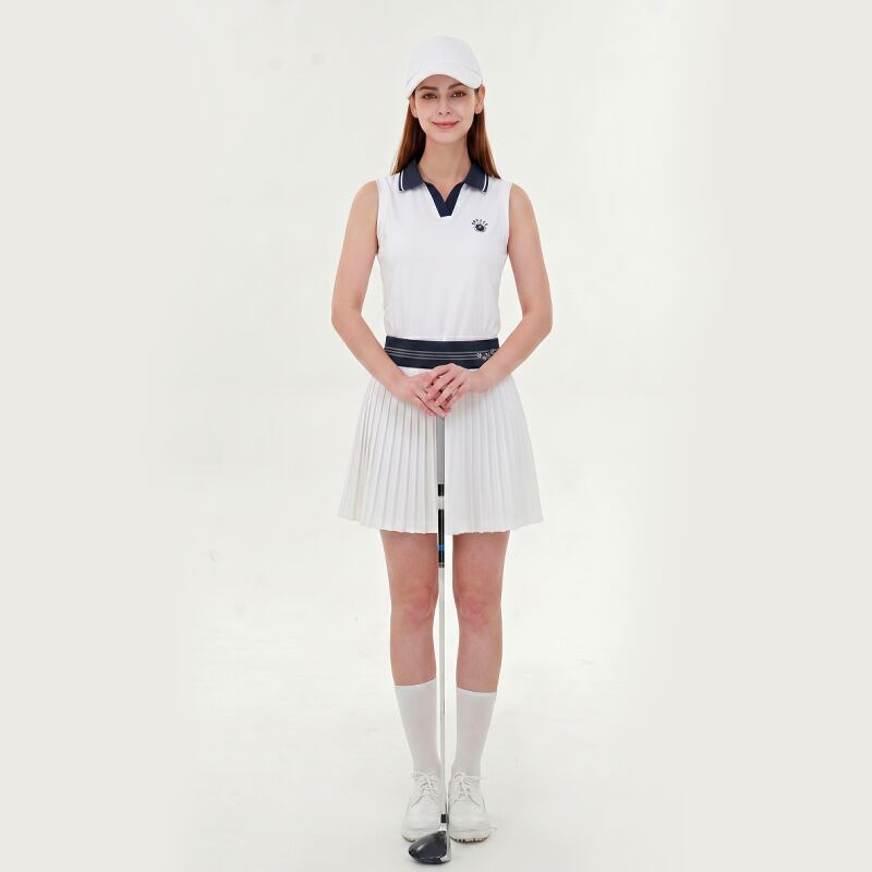 ・ノースリーブ仕様で腕まわりが動かしやすく、夏のラウンドや練習シーンにもぴったり
