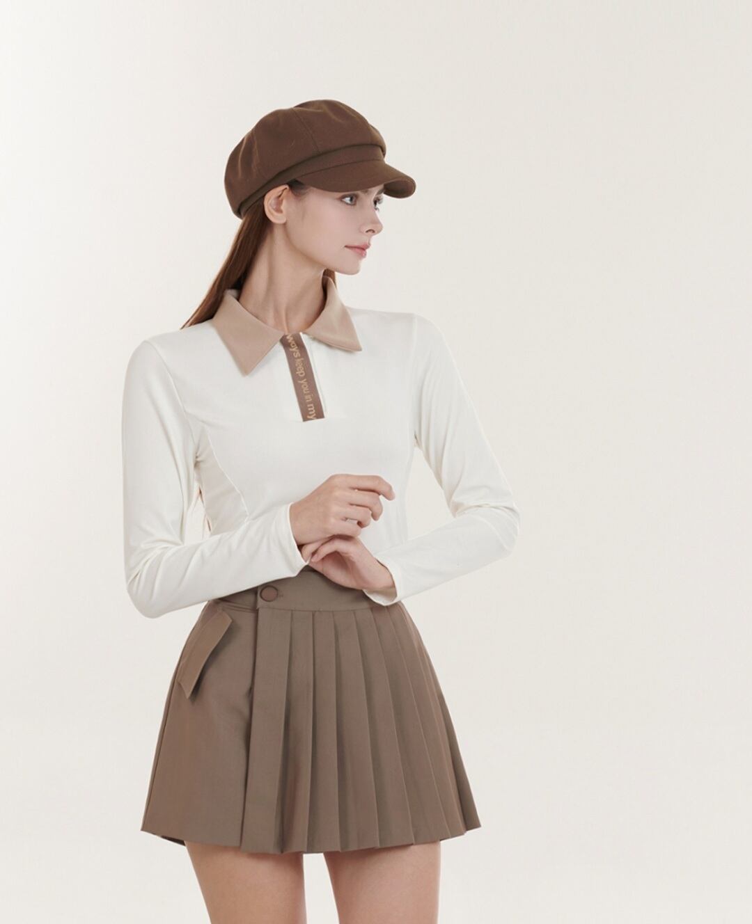 レタリング配色襟スリムフィットスパンティー QT14-1